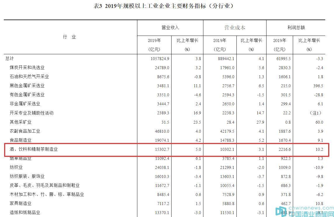 國家統計局:2019年酒、飲料和精制茶制造業利潤增長10.2%