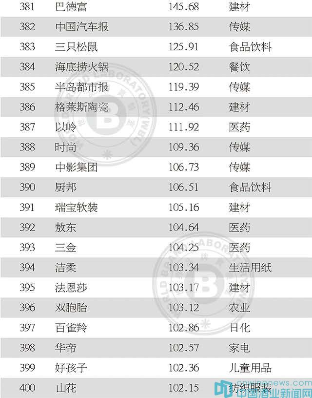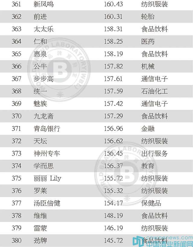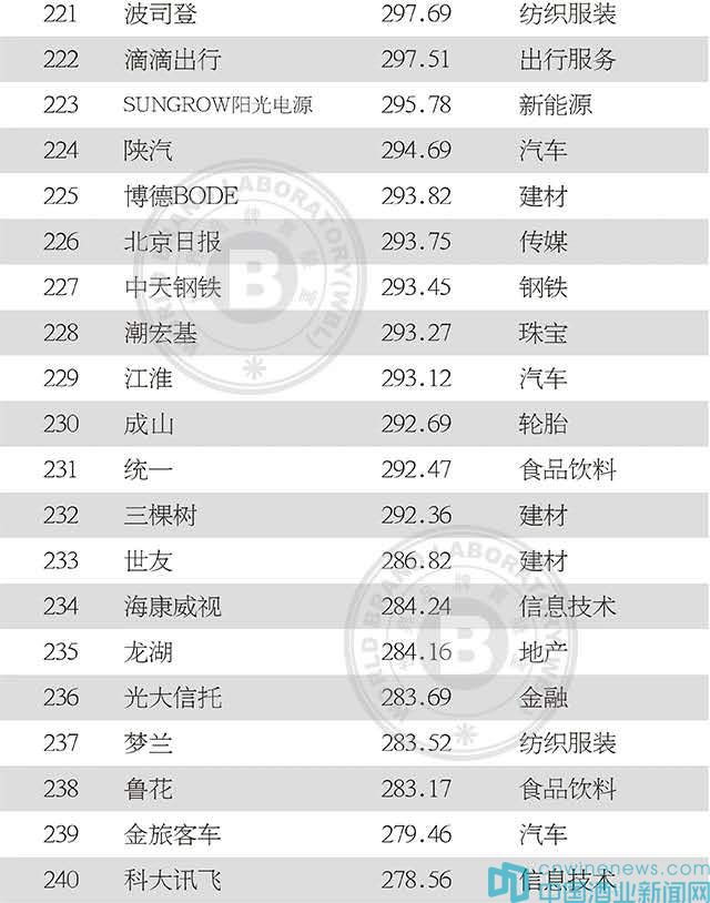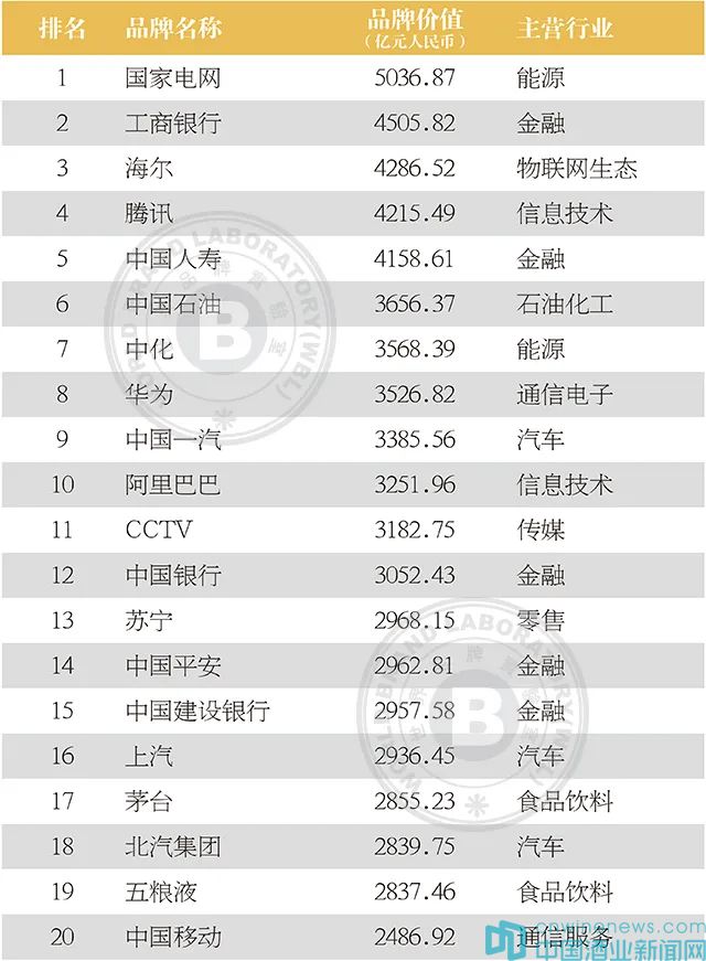 2020年中國500最具價值品牌榜單(全)