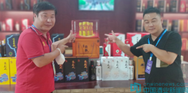 (9月9日,在貴州酒博會(huì)大佬展廳,貴州酒臺(tái)酒業(yè)集團(tuán)總經(jīng)理胡德才(右)與王新忠副總經(jīng)理齊聲稱贊大佬解酒效果好)