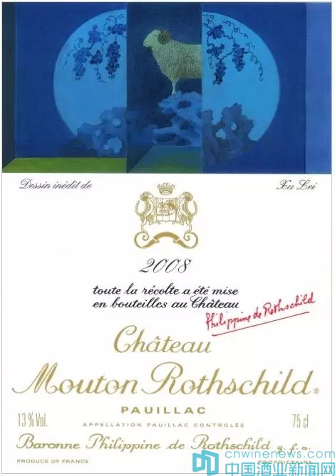 徐累的創作繼承了中國宋明時期傳統風格及工筆畫的細膩手法,并將其融入超現實主義或意念藝術等現代藝術潮流。他創作的2008年份酒標,沿用了作為酒莊標志的“公羊”主題。法語中的“木桐”(Mouton)是“羊”的意思,而在中國的傳統文化里,“羊”象征吉祥,預示“開泰”,即“新的美好的開始”。