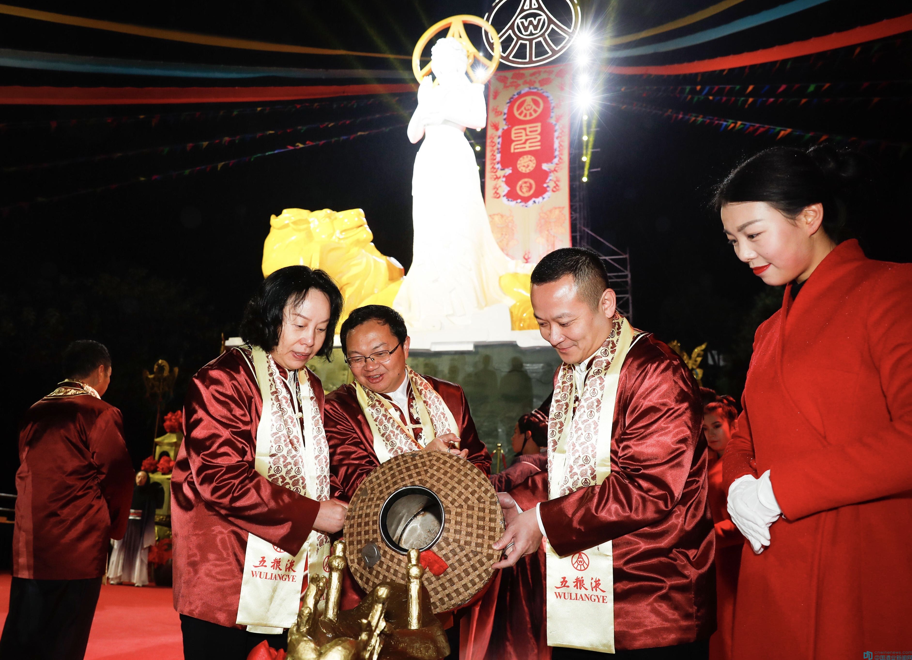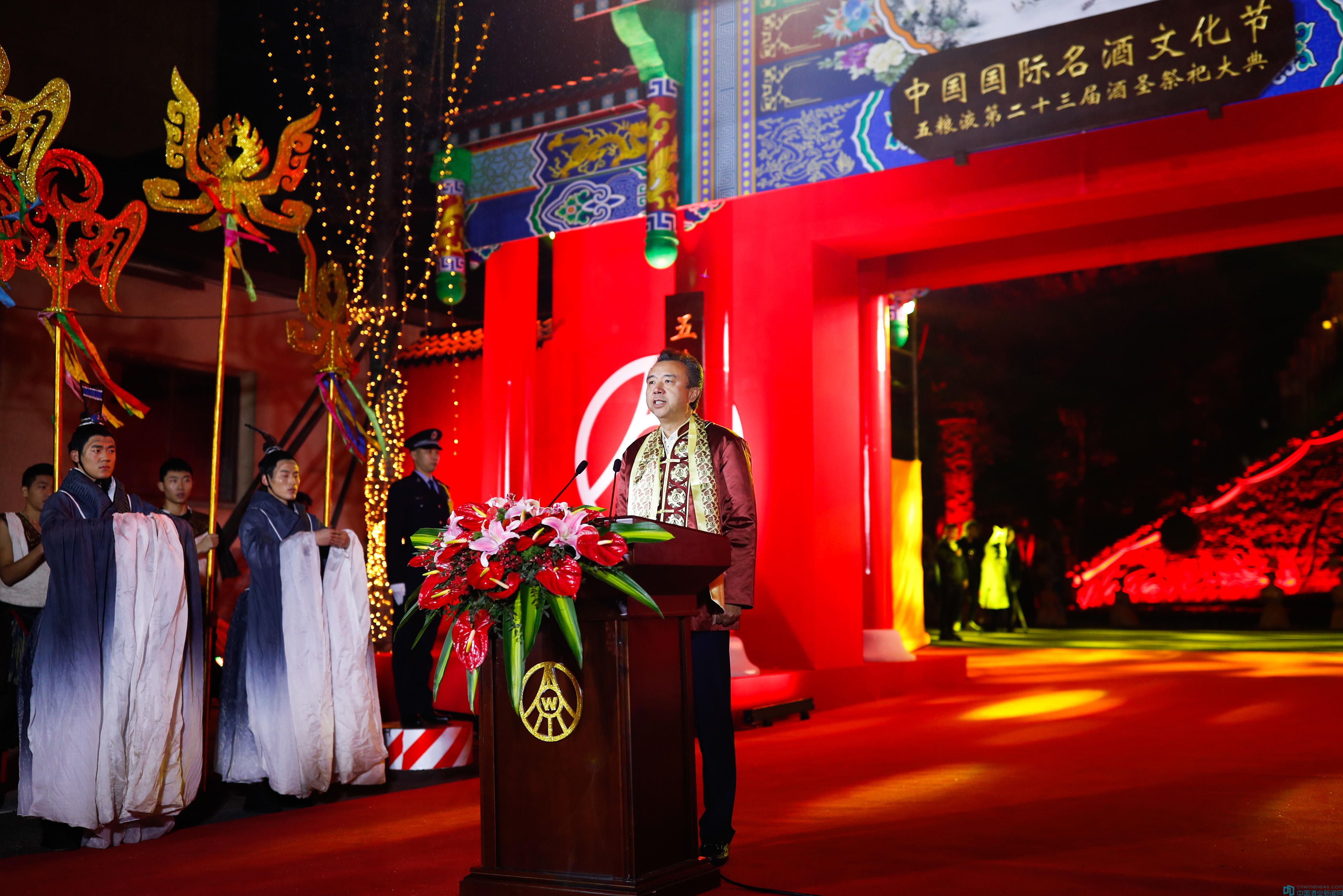 6點30分,9響盛世禮炮響過,四川省宜賓五糧液集團有限公司黨委書記、董事長李曙光宣布:“五糧酒承千古業,五代人釀萬年豐,第三屆中國國際名酒節·五糧液第二十三屆酒圣祭祀大典開始!”