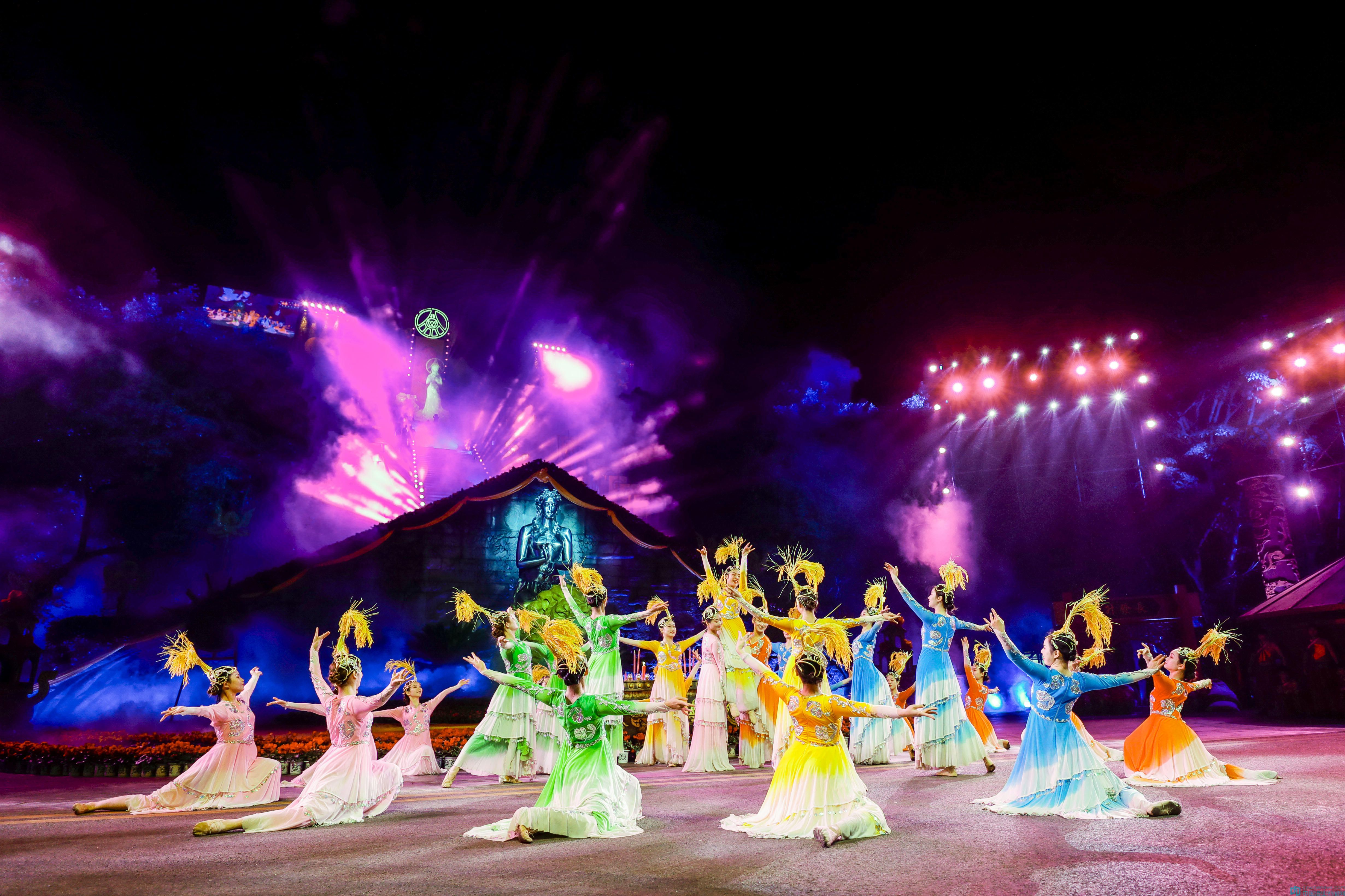 在神圣絢麗的燈光下,三江圣女、五谷仙女、酒漢子的表演,展示了風調雨順、五糧豐登、酒壯豪情的喜悅;請圣物、敬酒圣,莊嚴的儀式,讓人對天對地對五谷充滿敬重。