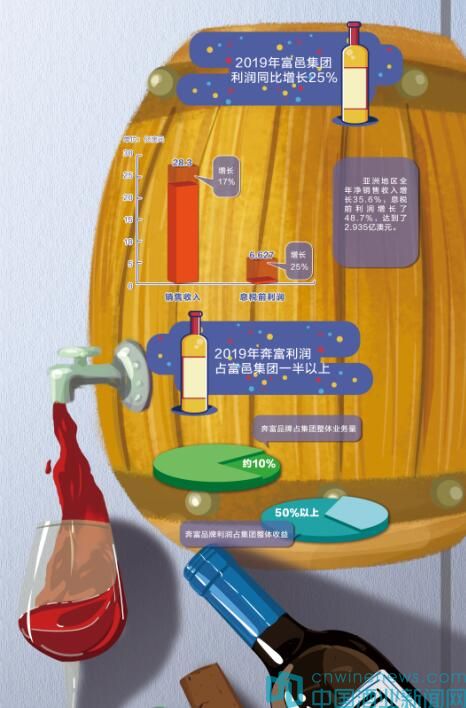 富邑葡萄酒集團2019年財年業(yè)績單顯示,集團凈銷售收入增長了17%,達(dá)到28.3億澳元,息稅前利潤(EBITS)增長了25%, 達(dá)到6.627億澳元。其中,亞洲地區(qū)全年凈銷售收入增長35.6%,息稅前利潤增長了48.7%,達(dá)到了2.935億澳元。