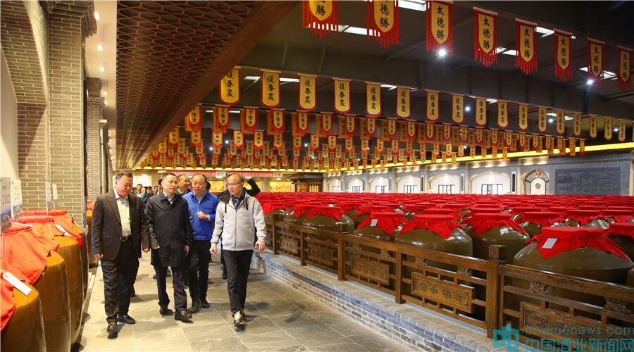 郭廣昌一行先后深入釀酒中心、包裝中心、養酒館、員工餐廳、員工公寓等實地考察。在濃香西北第一窖釀酒車間,考察團一行觀看了“櫻花時節,珍藏春釀”開釀儀式,詳細了解了金徽酒的生產工藝,郭廣昌現場摘取品鑒并簽名封壇珍藏了金徽原酒。