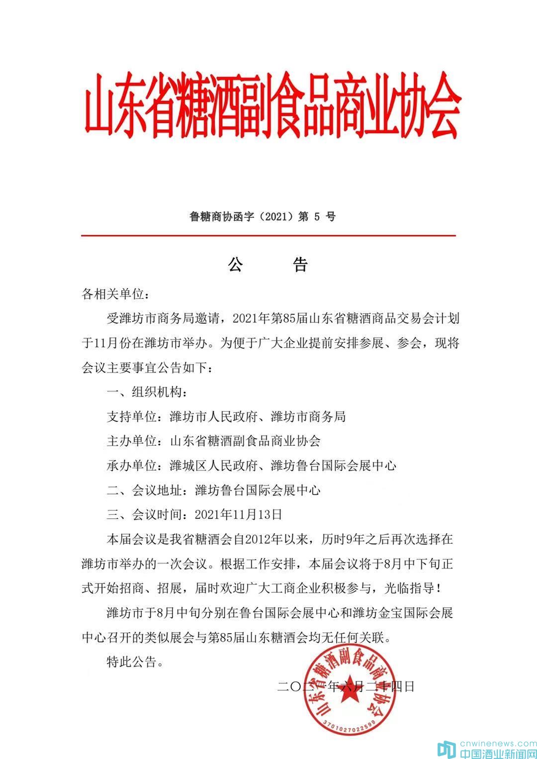 由山東省糖酒副食品商業協會主辦,濰城區人民政府、濰坊魯臺國際會展中心承辦的,2021年第85屆山東省糖酒商品交易會,計劃于11月13日在濰坊魯臺國際會展中心舉辦。