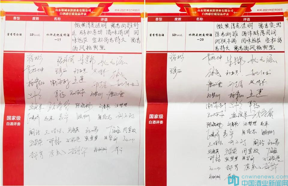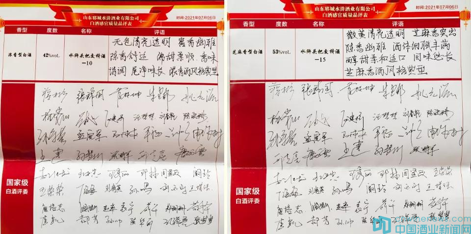 2021年7月6日,47名國家級白酒評委會盟鄆城水滸好漢城,為水滸集團·山東鄆城水滸酒業有限公司新上市的“水滸頭把交椅酒-10(42度濃香)”、“水滸頭把交椅酒-15(53度芝麻香)”、“水滸頭把交椅酒-15(53度醬香)”、“水滸頭把交椅酒-20(53度醬香)”進行了品鑒點評。