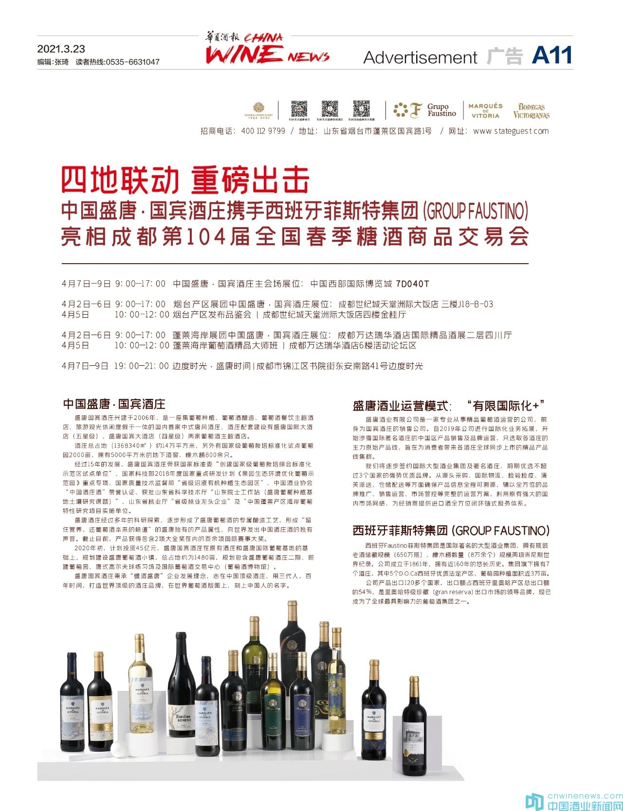 3月24日,15萬份承載著盛唐?國賓酒莊新戰略的《華夏酒報 /全國糖酒會特刊》奔赴成都,登陸第104屆全國糖酒會各布展酒店、會展中心主會場。
