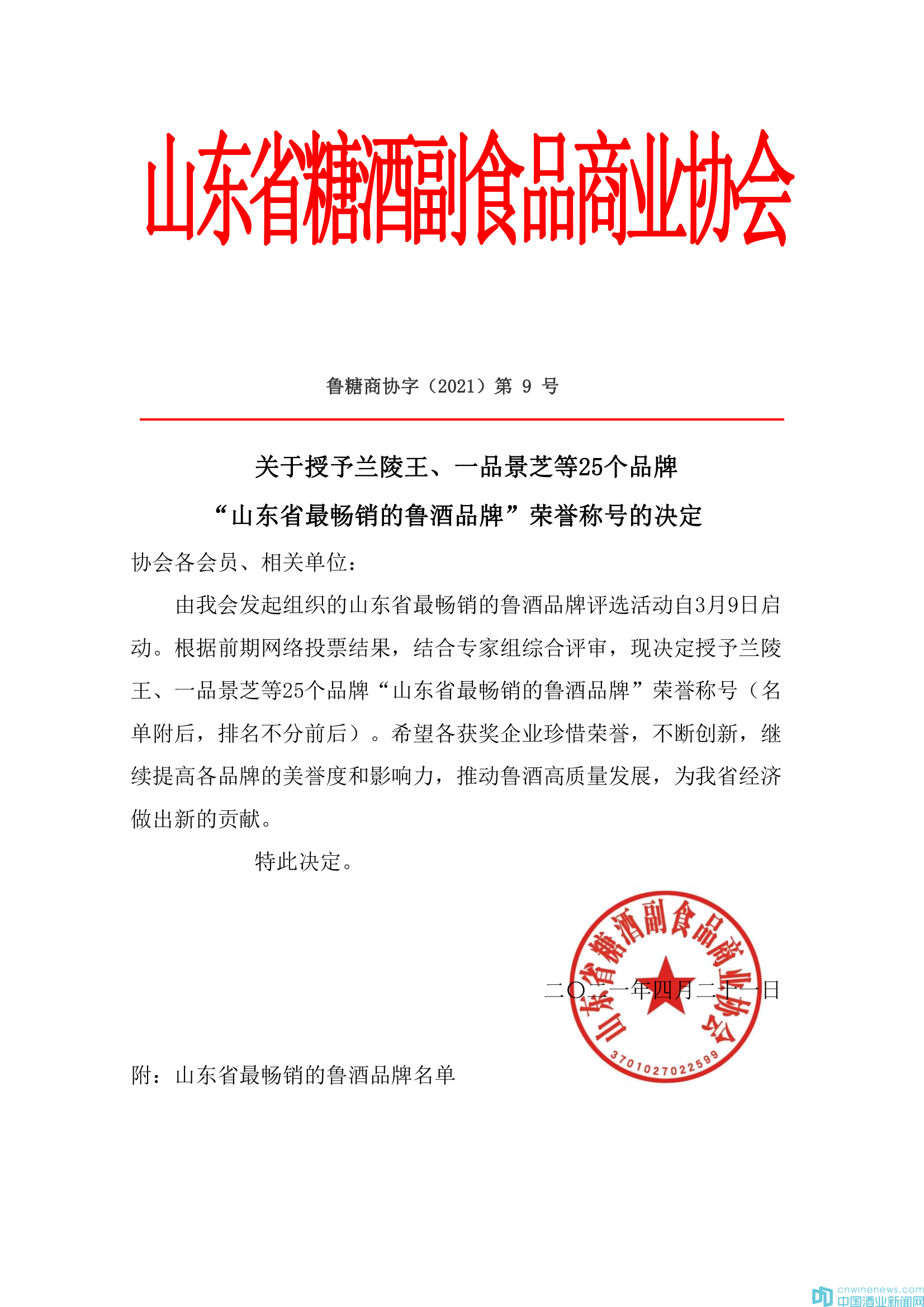 根據(jù)前期網(wǎng)絡(luò)投票結(jié)果,結(jié)合專家組綜合評審,日前,山東省糖酒副食品商業(yè)協(xié)會特別發(fā)文決定: