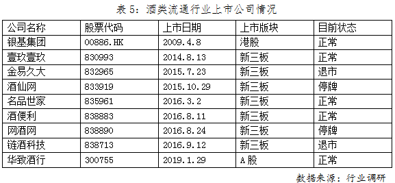 再看酒類連鎖品牌,酒類流通領(lǐng)域涌現(xiàn)出一批連鎖品牌,并且受到資本市場(chǎng)的的關(guān)注。雖然這種關(guān)注度還遠(yuǎn)不如對(duì)上游生產(chǎn)企業(yè)的青睞。但是,當(dāng)下酒類流通行業(yè)擁有超過五百萬家以上的流通終端,70%以上為煙酒夫妻店,都處于早期野蠻生長階段,而已經(jīng)登陸資本市場(chǎng)的壹玖壹玖、華致酒行、酒便利等酒類連鎖品牌,尚未形成絕對(duì)意義上的全國性品牌,這正是資本市場(chǎng)價(jià)值的洼地,這也是下一個(gè)具有絕對(duì)發(fā)展?jié)摿Φ馁惖馈R虼耍陙黻懤m(xù)有資本加持酒類連鎖品牌的大動(dòng)作:2014年8月,壹玖壹玖酒類科技登陸新三板,并逐步建立了線上、線下一體化的商業(yè)模式,2019年壹玖壹玖獲得阿里20億投資;2015年,酒仙網(wǎng)登陸新三板并獲得紅杉資本等多家投資,2017年停牌轉(zhuǎn)戰(zhàn)沖擊A股市場(chǎng);2016年,以滿足即飲消費(fèi)群體為商業(yè)模式的的酒便利商業(yè)連鎖,獲得聯(lián)想控股2.1億投資,助其開拓北京市場(chǎng),隨后又追加投資拓展西安、江蘇市場(chǎng);2019年1月,華致酒行成為酒水流通行業(yè)首家A股上市公司。與此同時(shí),更多的品牌上市后或退市、或停牌、或者淡出,也從側(cè)面說明了酒水流通行業(yè)競爭的慘烈程度。