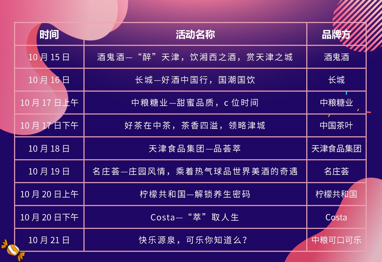 金秋十月桂飄香,美食美酒購不停!隨著金秋好時節(jié)的來臨,第105屆全國糖酒會將于10月15日在天津南開大悅城火爆登陸,將開啟為期7天的狂歡盛會。