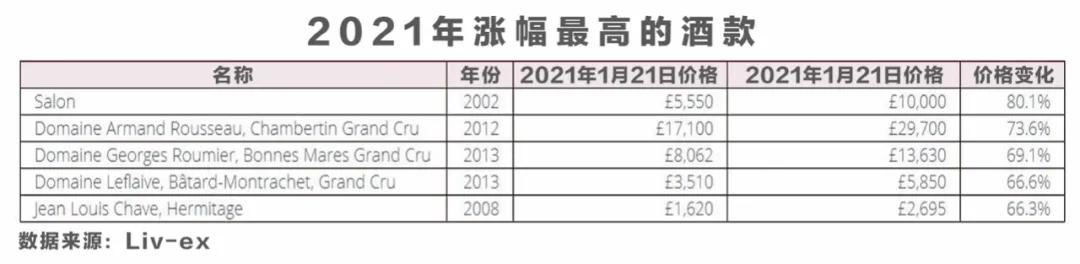 2021年價(jià)格漲幅最大的酒款