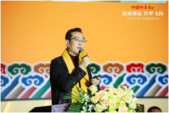 譚忠豹向大會致辭,他表示2021年是汾酒集團(tuán)“十四五”規(guī)劃的開局之年,更是竹葉青品牌發(fā)展最關(guān)鍵、最具里程碑意義的一年。