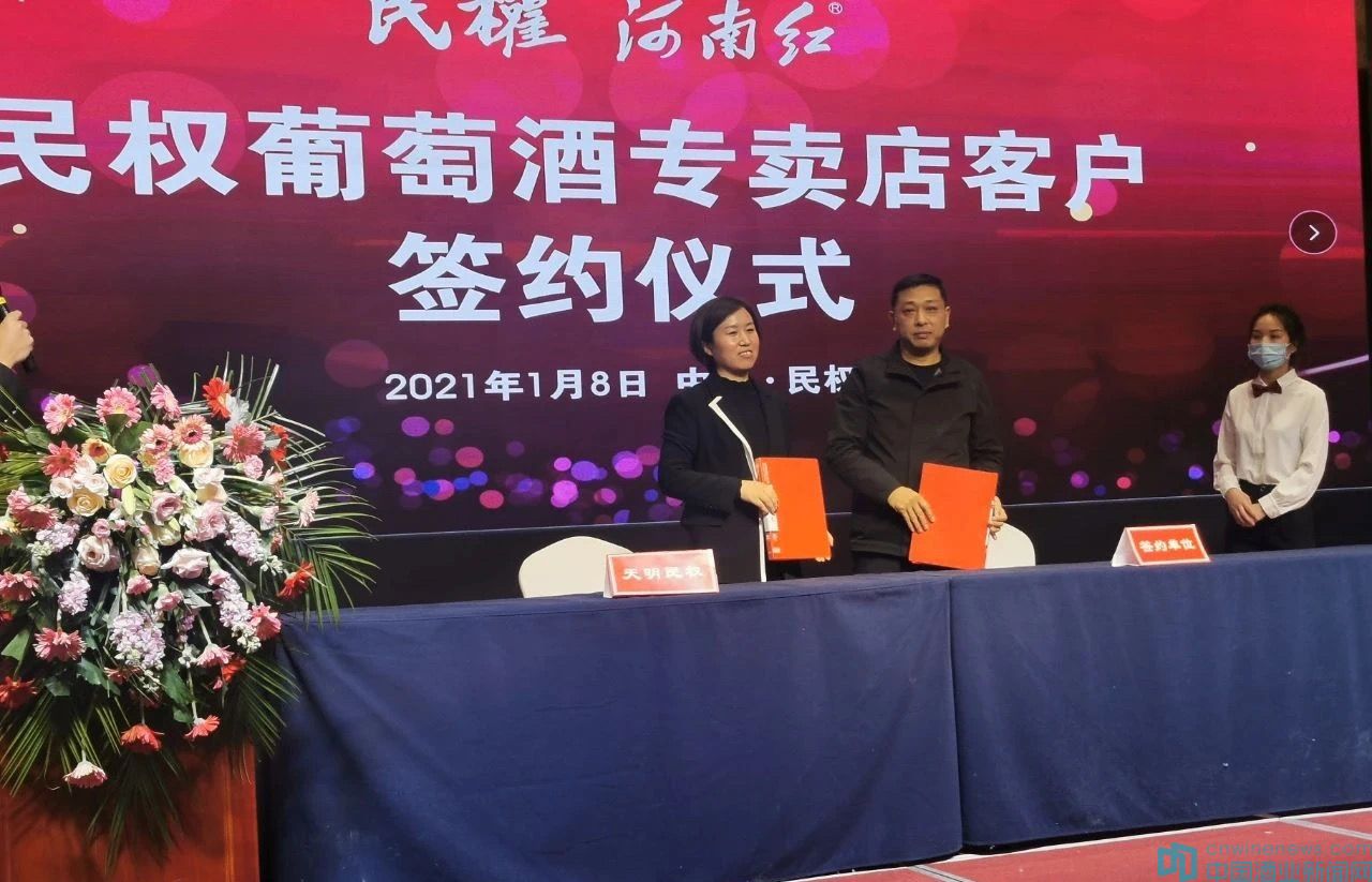 會上,天明民權(quán)葡萄酒分別與建業(yè)新生活、熊貓傳媒、酒仙網(wǎng)、UU跑腿舉行品牌渠道戰(zhàn)略合作簽約。胡葆森宣布每年消費天明民權(quán)葡萄酒100萬以上,連續(xù)10年,并帶動與會河南、江蘇、廣東、福建、北京、浙江、上海等省市行業(yè)協(xié)會、商業(yè)機構(gòu)助力民權(quán)葡萄酒。中沃·兵創(chuàng)匯、北京河南企業(yè)商會、雙全投資控股、黃金鋪集團、優(yōu)博集團、豫商聯(lián)合會、河南貴州商會、鄭州軌道裝備、北京華翔航迅、森源集團、豫發(fā)集團、白象集團、廣州中港建設(shè)集團、UU跑腿、UFO WORK、河南微醫(yī)、星聯(lián)置地、藍天集團、恒輝集團、華蘭生物、銳之旗集團、萬匯控股等代表簽訂了金額3260萬定制酒合約。