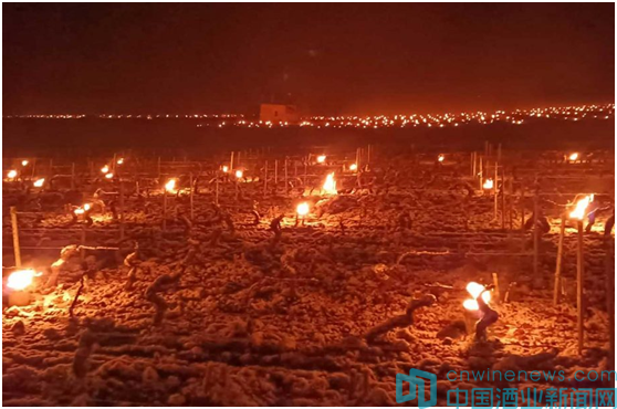 勃艮第夏隆內丘的Belleville酒莊在葡萄園點燃火把抵御霜凍