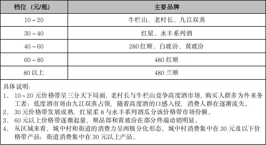 海口市場光瓶酒消費氛圍良好,盒裝酒在百元以下價位無亮眼品牌,故??谑袌龀蔀楦鞔笃放聘呔€光瓶酒的試驗田。??谑袌龉馄烤平陙戆l(fā)展迅猛,2012年前的主流價格帶為10~15元,經(jīng)過數(shù)年的消費升級,主流價格帶已攀升至30~40元。