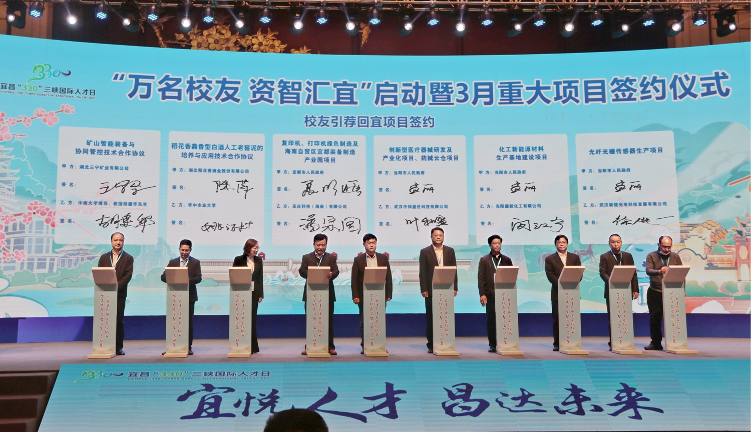 三峽國際人才日是宜昌市委、市政府打造的宜昌人才專屬節(jié)日,旨在深入實(shí)施人才強(qiáng)市戰(zhàn)略,在全社會營造聚才、愛才、重才、用才的濃厚氛圍。“萬名校友資智匯宜”啟動暨3月重大項(xiàng)目簽約儀式是其中的重磅活動之一,現(xiàn)場簽訂的項(xiàng)目將為宜昌高質(zhì)量發(fā)展注入新動力,為宜昌實(shí)現(xiàn)“六城五中心”發(fā)展目標(biāo)增添新動能。