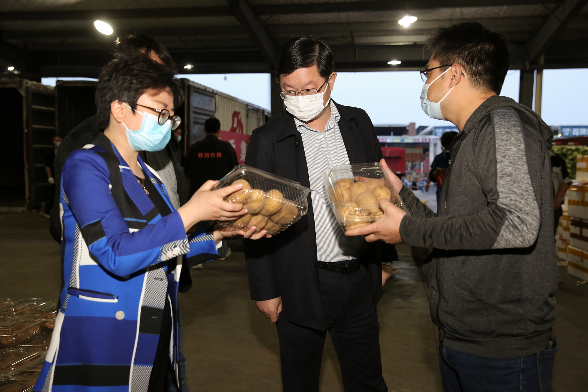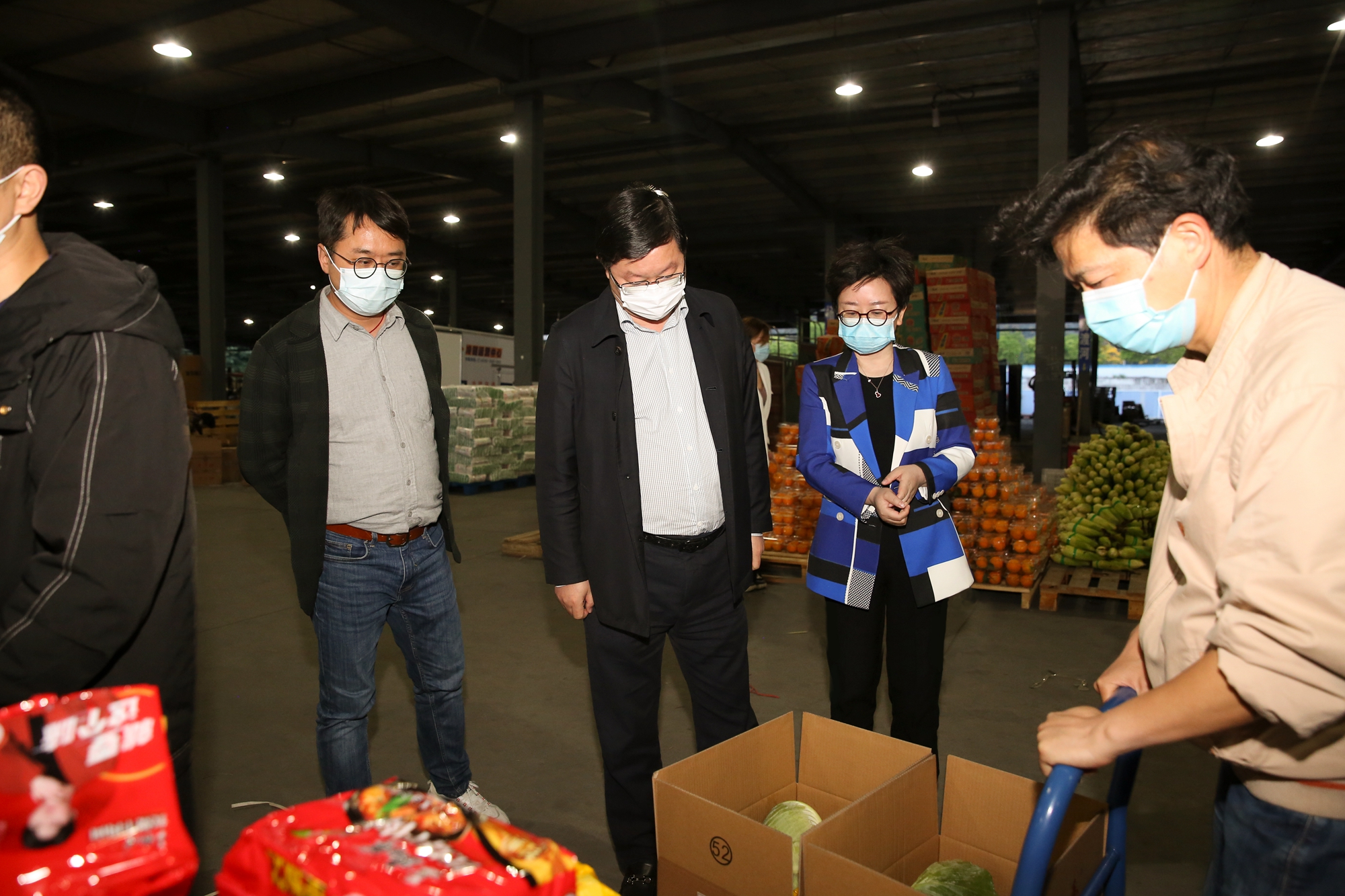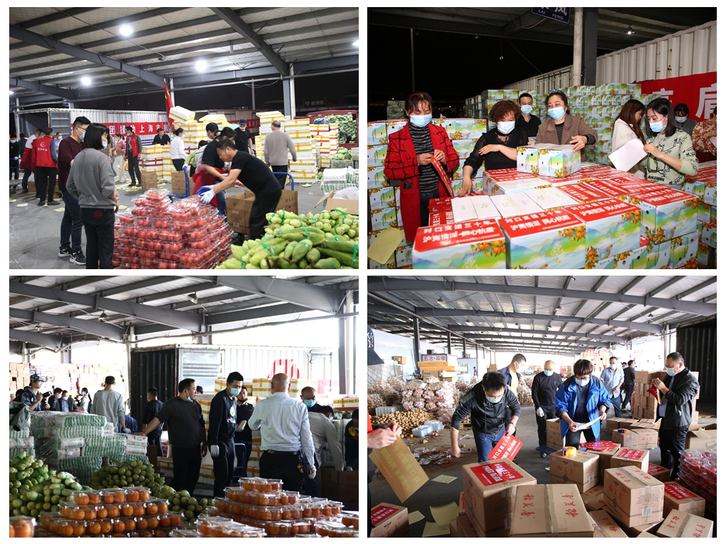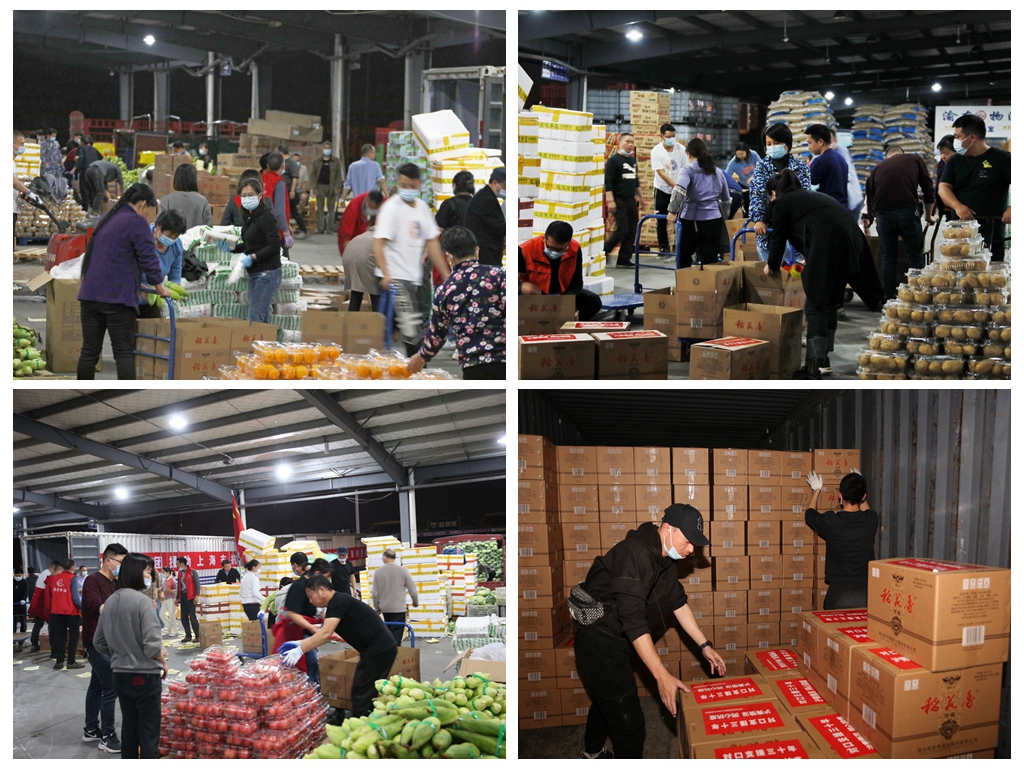 當(dāng)天下午2點(diǎn)半,調(diào)集的包裝箱一到分揀平臺(tái),大家各就各位,數(shù)輛小推車魚貫而行,各類蔬菜、水果有序放入箱內(nèi),現(xiàn)場(chǎng)分揀、封箱、轉(zhuǎn)運(yùn)、裝車各項(xiàng)工作忙而不亂,快速推進(jìn)。時(shí)間緊、任務(wù)重,晚上陸續(xù)有物流園員工、園區(qū)商戶等前來支援,分揀包裝隊(duì)伍擴(kuò)大到六七十人,大家爭(zhēng)分奪秒,全力奮戰(zhàn),力爭(zhēng)在最短的時(shí)間完成分裝。