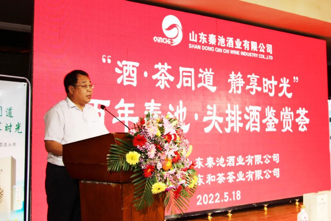 2022年5月18日,山東秦池酒業有限公司在臨朐縣貴賓樓隆重舉辦“酒·茶同道 靜享時光”頭排酒鑒賞薈,會議邀請濰坊白酒愛好者及部分商界領袖、高端酒消費者百余名嘉賓,同品明前茶,共鑒頭排酒。