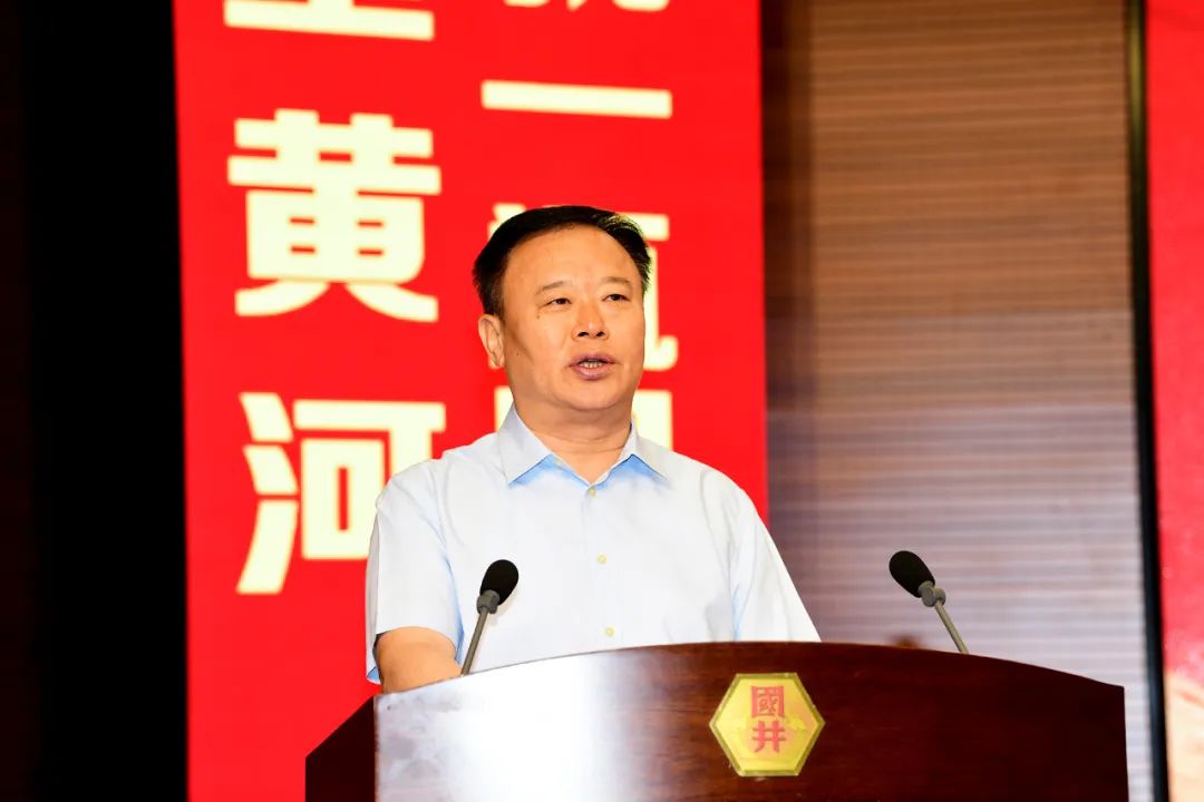 山東省糖酒副食品商業協會會長薛劍銳代表山東省白酒協會、山東省食品工業協會、山東省糖酒副食品商業協會在致辭中講到:在芒種麥收季節到來之際,國井集團舉行萬里黃河醉高青文化大典。這不僅是國井集團自身的文化活動,也是山東白酒行業的一次盛會,更是山東白酒提升品質、擴大全國品牌影響力的一次重要機遇。隨著黃河流域生態保護和高質量發展國家戰略的深入實施,以及黃河國家文化公園(山東段)建設的規劃建設,山東白酒的黃河文章大有可為!希望國井集團繼續發揮龍頭作用,加強文化創新、品牌創新、科技創新,引領山東白酒行業,百尺竿頭,更進一步為加速魯酒振興,為山東省食品行業發展,做出新的、更大的貢獻!