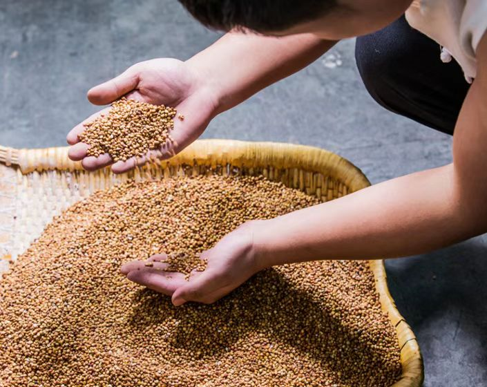 一次投糧。精選日照長、淀粉含量高的優(yōu)質(zhì)高粱為糧谷,配以豌豆和大麥等制成的大曲為糖化發(fā)酵劑,沿用傳統(tǒng)古法地缸發(fā)酵,采用輕灑薄鋪、見氣壓汽的上甑操作,完善了“二高一中一長”工藝。每周期雙輪發(fā)酵56天,充分將高粱的香味物質(zhì)經(jīng)過固態(tài)發(fā)酵,產(chǎn)生更多的健康因子釋放到酒中,以保證酒體豐富圓潤,口感更協(xié)調(diào)。