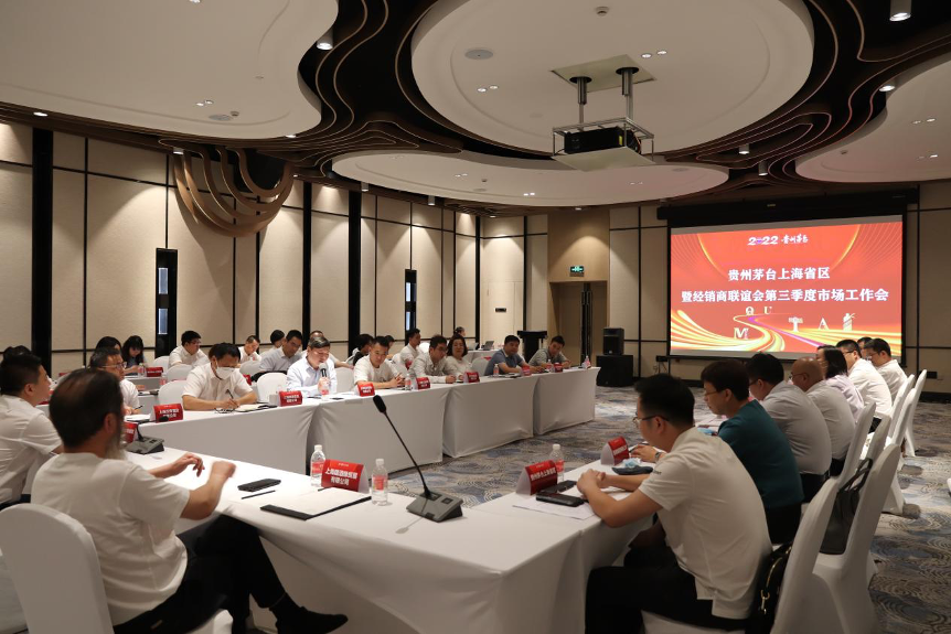 9月3日下午,貴州茅臺上海省區暨經銷商聯誼會第三季度市場工作會議在上海虹橋綠地鉑驪酒店舉行。貴州茅臺銷售有限公司上海省區、貴州茅臺上海經銷商聯誼會秘書處、傳承人工作部,上海全體經銷商及渠道商負責人、茅臺融資租賃公司代表等人員參加會議。