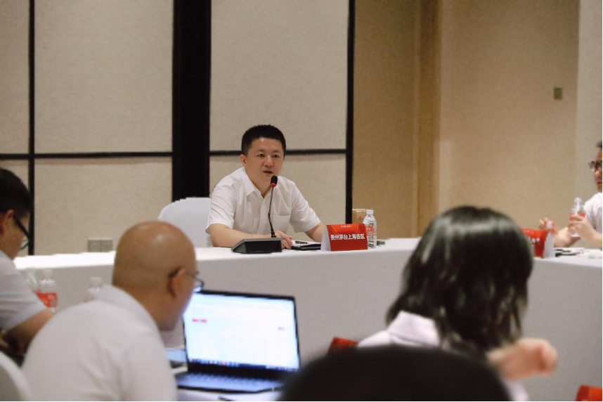 貴州茅臺上海經銷商聯誼會會長蘇小相匯報三代店的推進情況,包括每次會議的具體議題和決策依據,并強調了未來的工作計劃。