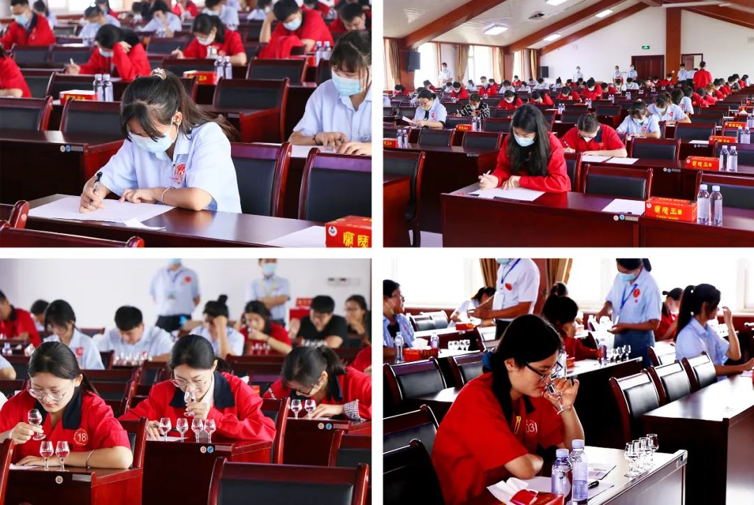 此次競賽共60位選手參加,分理論考試和實踐操作兩部分。在理論考試中,選手們嚴肅考紀、奮筆疾書,展示出各自扎實的理論功底。在實踐操作過程中,選手們全神貫注、沉著冷靜,通過眼觀色、鼻聞香、口嘗味的方式對6個輪次30個酒樣從質量差、酒精度、發酵設備、糖化發酵劑、香型等方面進行品評、分析、比對。