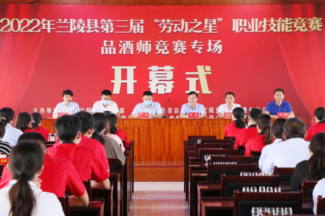 蘭陵縣人力資源和社會保障局黨組成員黃勇同志、蘭陵縣總工會黨組成員范天坤同志、蘭陵縣融媒體中心總編輯許強及蘭陵縣工業和信息化局的相關領導出席了開幕式,山東蘭陵美酒股份有限公司副總經理尹福致辭,蘭陵縣人力資源和社會保障局黨組成員黃勇同志宣布開幕。