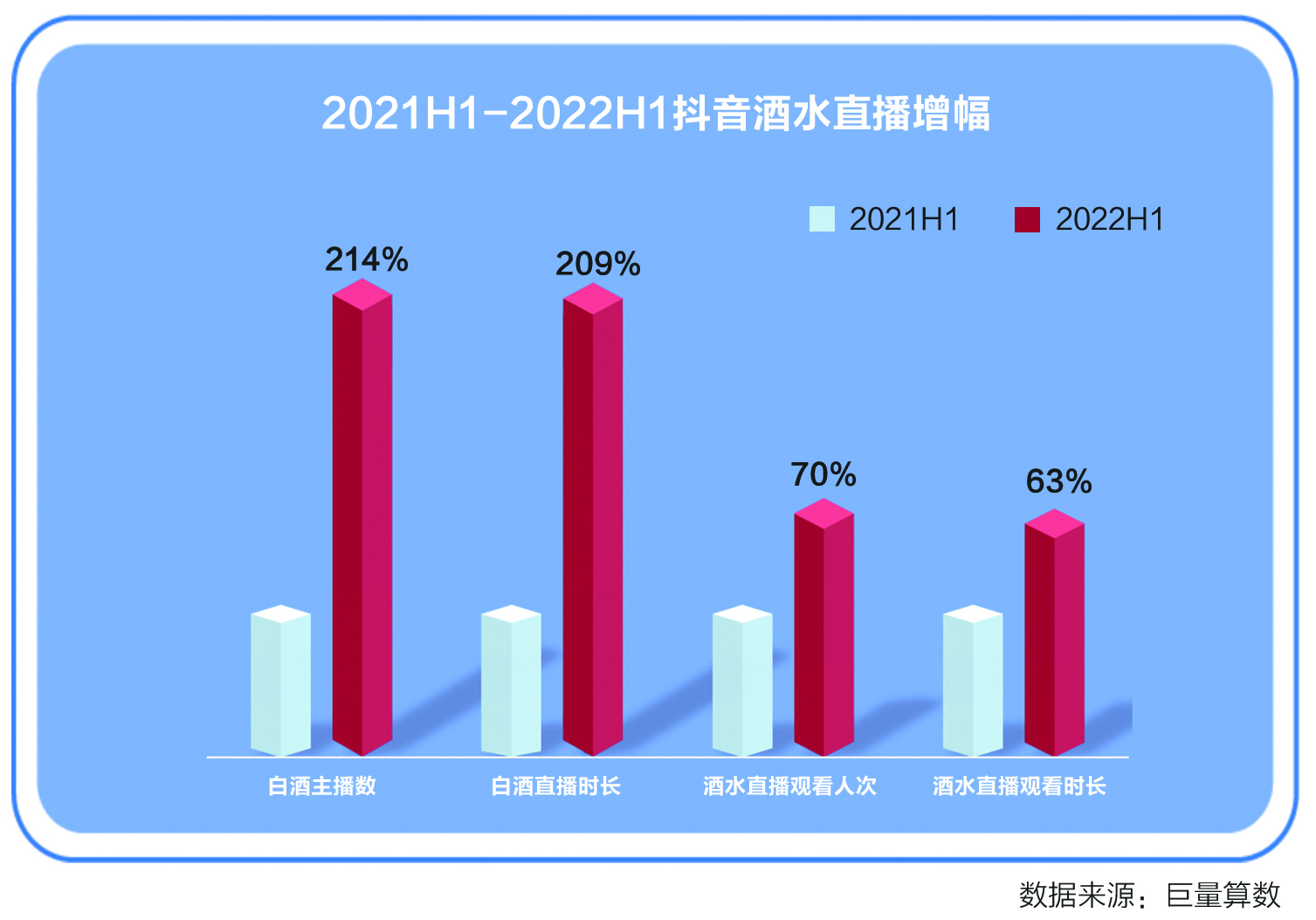 近日,巨量算數對白酒抖音電商環境進行調研后發布的《2022白酒行業數字營銷白皮書》(以下簡稱《白皮書》)顯示,抖音用戶對酒水直播的熱情持續高漲,線下消費受限,大部分消費力能被線上承接,今年上半年,看播人次及觀看時長分別同比增長70%和63%。