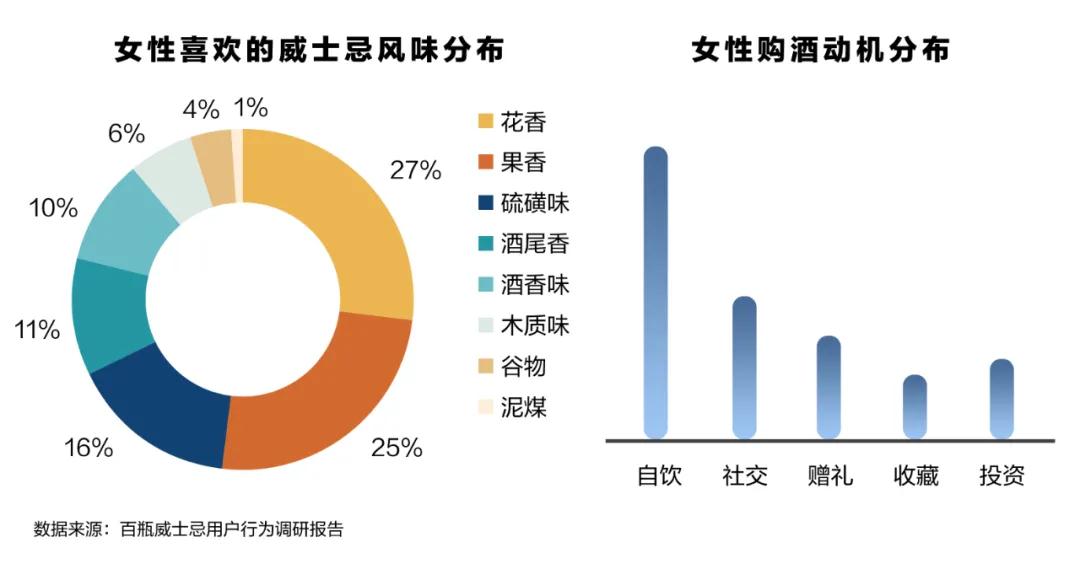 90后女性進入威士忌領域趨勢明顯,消費1200元以上高價威士忌的女性多于男性。《2021中國威士忌年度白皮書》顯示,都市白領、Z世代年輕人、資深中產成為女性威士忌消費人群的前三甲,自飲、悅己成為女性購買威士忌的主要動力。