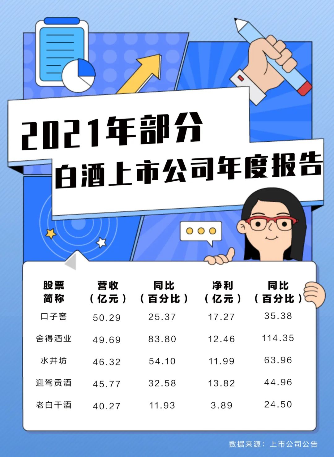 數據顯示,2021年,舍得、水井坊、迎駕貢、老白干的營業收入分別為49.7億、46.3億、45.8億和40.27億,再加上生猛的酒鬼酒34.14億和剛跨過50億的口子窖,上市企業接近或剛到50億是一件值得慶賀的事,雖然酒鬼酒距離50億還有些距離,但其生猛的增長率,50億可能對其來說更是小菜一碟。