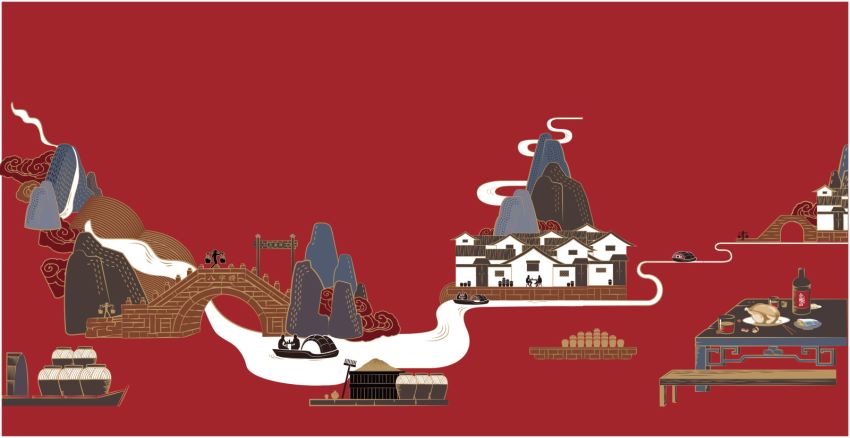 在瓶標設計上,會稽山1743一改中國黃酒包裝穩(wěn)重而傳統(tǒng)之風格,依托小橋、流水、人家等元素,通過底蘊深厚的東方版畫風格,以新穎潮流之姿,把江南水鄉(xiāng)和黃酒文化氛圍娓娓道來,既展示了江南水鄉(xiāng)優(yōu)美的釀酒場景,又開啟了消費者獨特的空間想像和詩意體驗,讓廣大消費者從瓶標上就可以感受到,以酒寄情、詩酒結合、酒香四溢的別樣江南水鄉(xiāng)生活場景,感受到慢城生活中的點點滴滴!