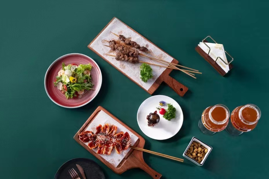 此外,青啤對品質的追求還體現在酒杯里、擺盤里、刀叉里、配菜里……為了釋放啤酒最佳口感,青啤采用專酒專杯,專屬啤酒杯讓不同精釀的色澤、香氣、味道、口感達到最佳狀態。而根據每一款精釀啤酒的口味特點,精準搭配不同口味的文化融合菜,例如美式IPA,因其本身苦味且回水果甘,搭配咸、辣口味的菜品(肉類、海鮮和披薩)最適宜;以苦味為主的比利時雙料,搭配甜、鮮為主的餐品(扒腸、甜點)最適宜。
