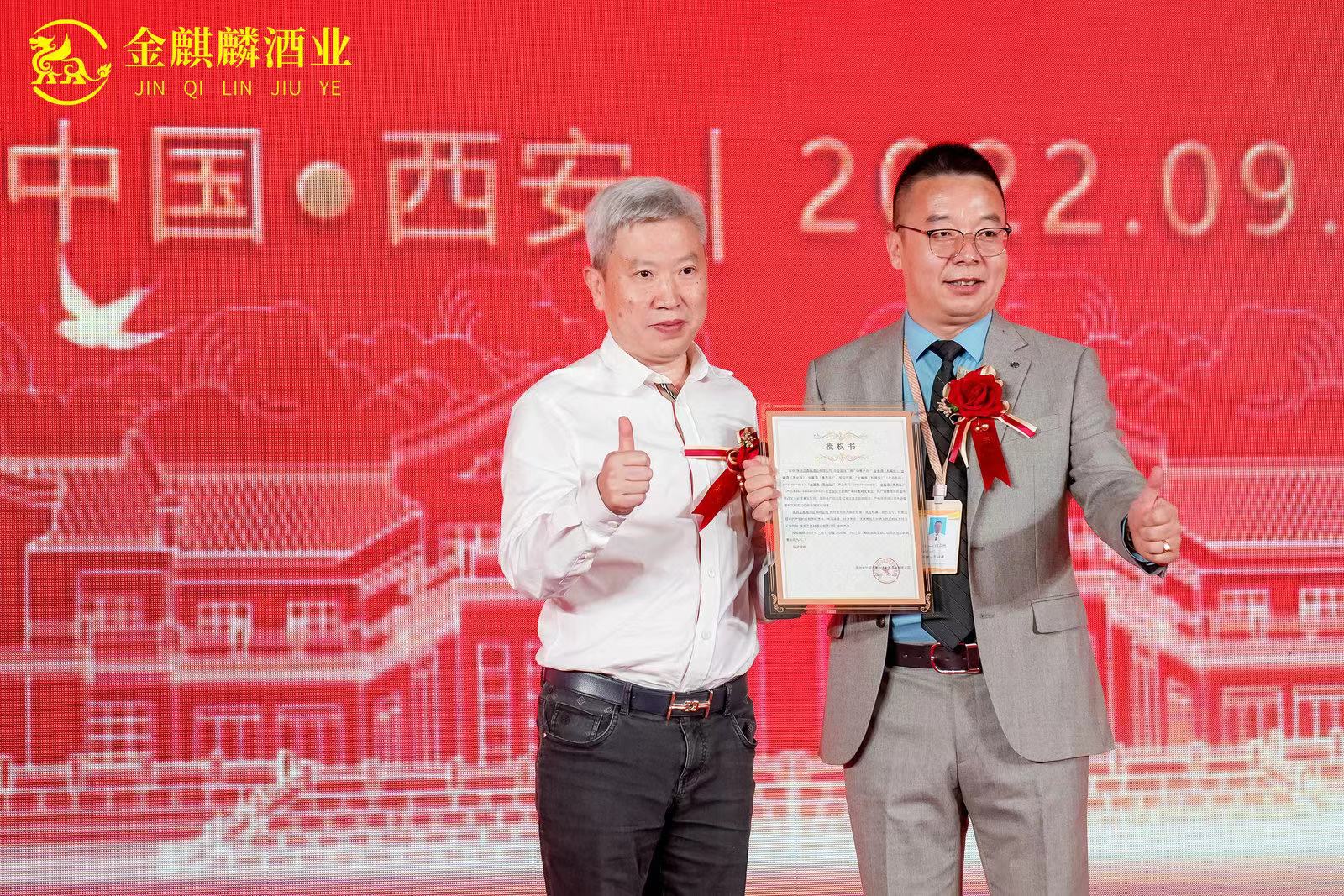 金醬酒業有限公司副總經理、尊貴金醬酒品牌負責人張梅和陜西金麒麟酒業營銷策劃有限公司為咸陽誠成商貿有限公司、西安市睿安品酒業有限公司、府谷縣鑫樂源商貿有限公司、禮泉縣永昌商行、西安郎久商貿有限公司、西安經濟技術開發區新怡商店、西安市雁塔區偉東煙酒店、黃陵縣欣新酒行、陜西滿愿文化傳播有限公司、彬州隆盛源商貿有限公司總、西安市新城區紅星煙酒商店、商洛三秦印象農業開發有限公司、陜西晟坤商貿有限公司、定邊縣御湯園商行、陜西徽商商貿有限公司授牌。
