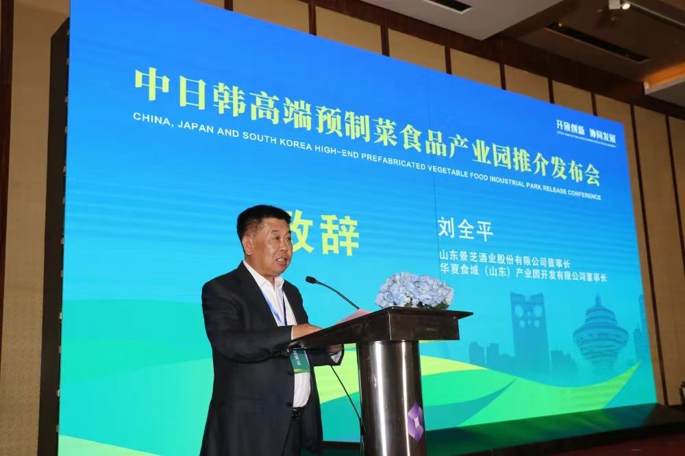 山東景芝酒業股份有限公司董事長、華夏食域(山東)產業園開發有限公司董事長劉全平代表產業園開發運營主體發表致辭;中產源建(青島)投資有限公司董事長、華夏食域(山東)產業園開發有限公司總經理王林現場對招商項目推介,就產業園區六大重點招商領域等廣大客商關注的熱點內容進行了全面介紹和解讀。