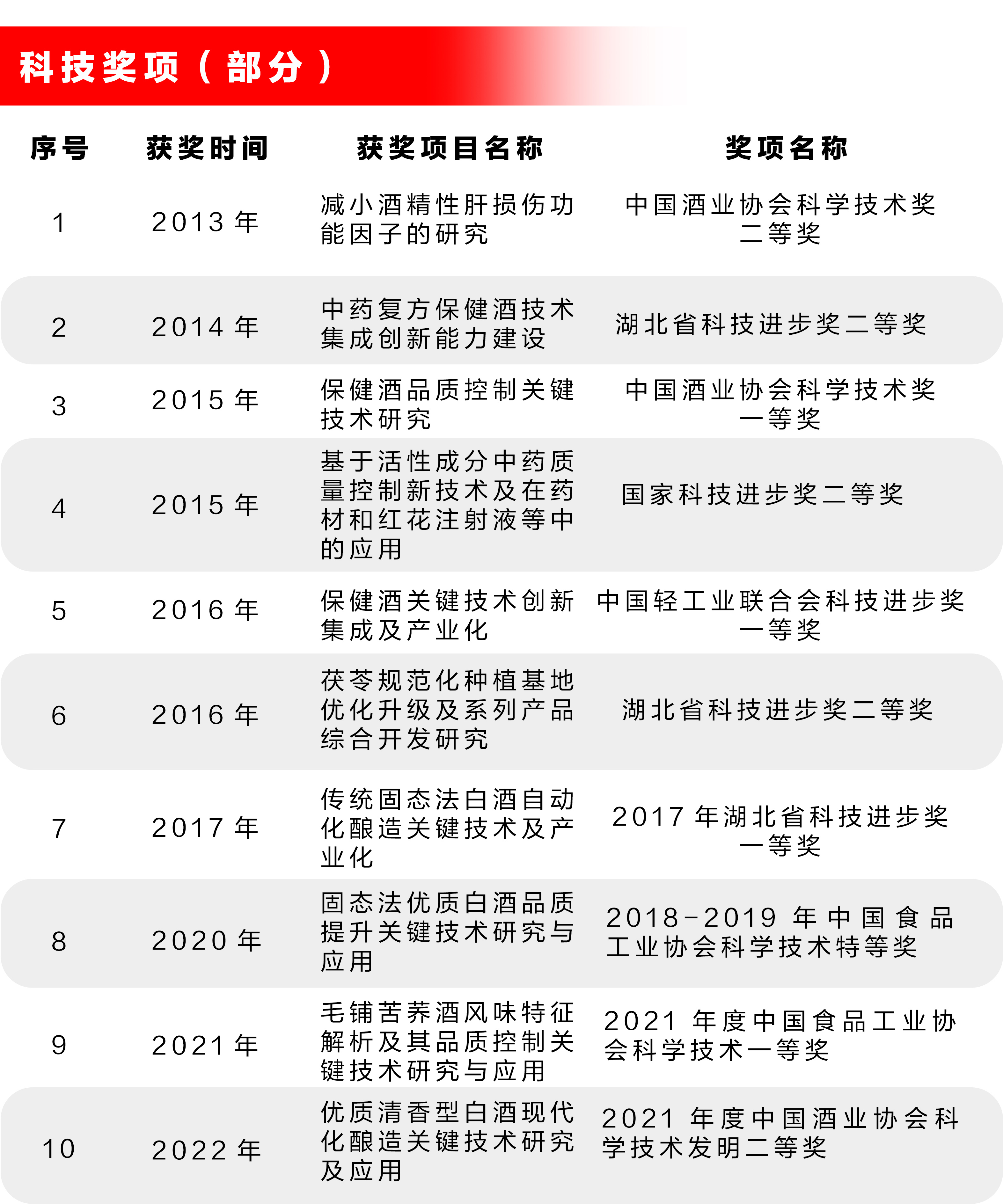 同時,勁牌公司建有國家博士后科研工作站、中國輕工業露酒工程技術研究中心、湖北省保健酒工程技術研究中心、中藥保健食品質量與安全湖北省重點實驗室等12個國家及省級科研創新平臺,擁有完善的分析實驗室,具有國際水準的專用研發儀器設備,為研發和技術創新奠定堅實的硬件基礎。