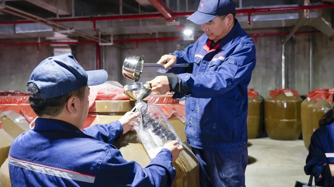 現場抽樣:專家前往陶缸庫,對不同年份的基酒進行取樣;