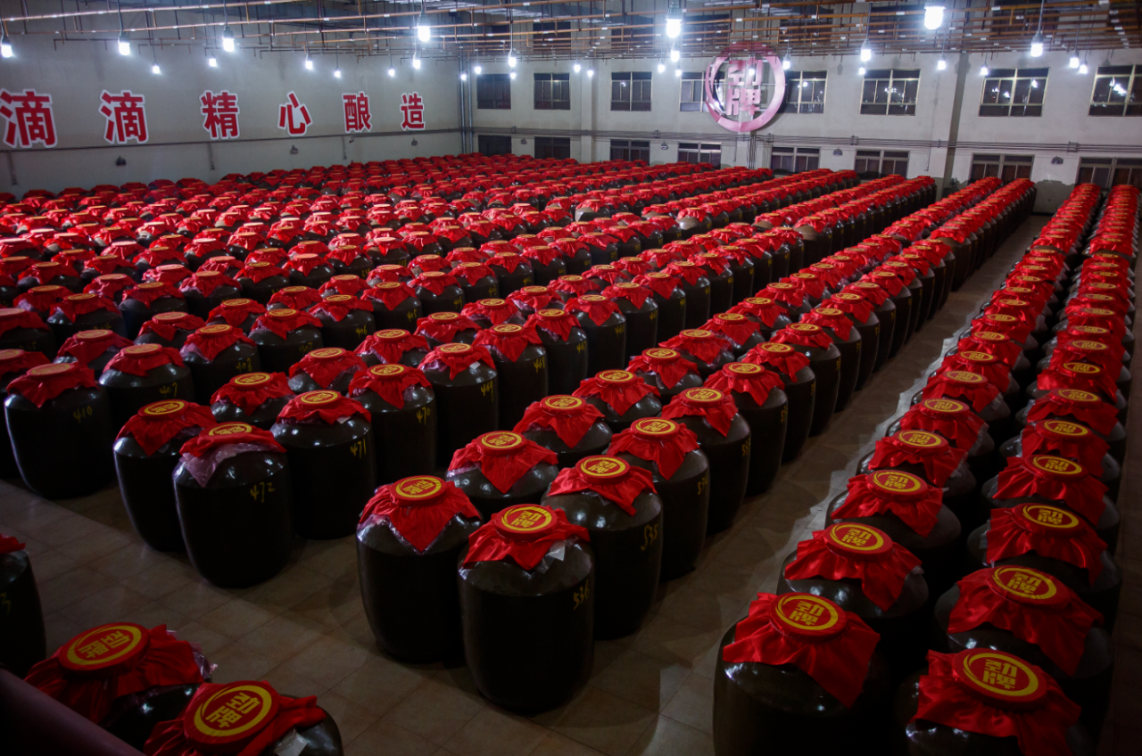 勁牌公司原酒年產量逾13萬噸,存儲濃、清、醬三香型原酒50余萬噸,并已建成40余萬噸陶缸酒庫,遠超年份酒認證標準。