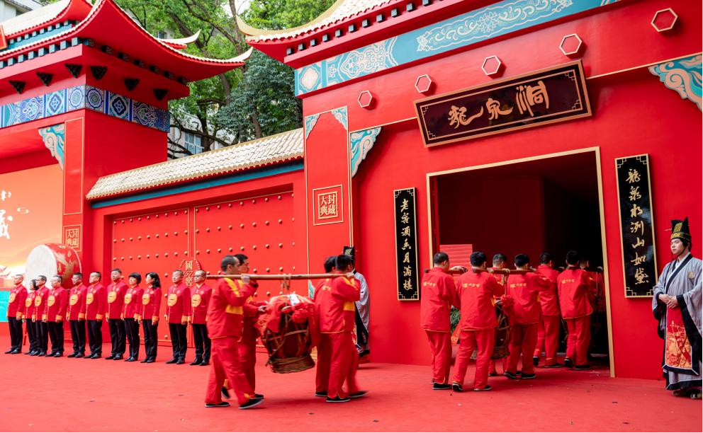 禮敬中華文脈,共品國之濃香。癸卯年閏二月初二,酒城瀘州鳳凰山麓,禮樂盈門莊嚴肅穆,伴隨著擊鼓醒龍禮樂表演,以“你能品味的歷史 國窖450年”為主題的2023年瀘州老窖·國窖1573封藏大典拉開序幕。