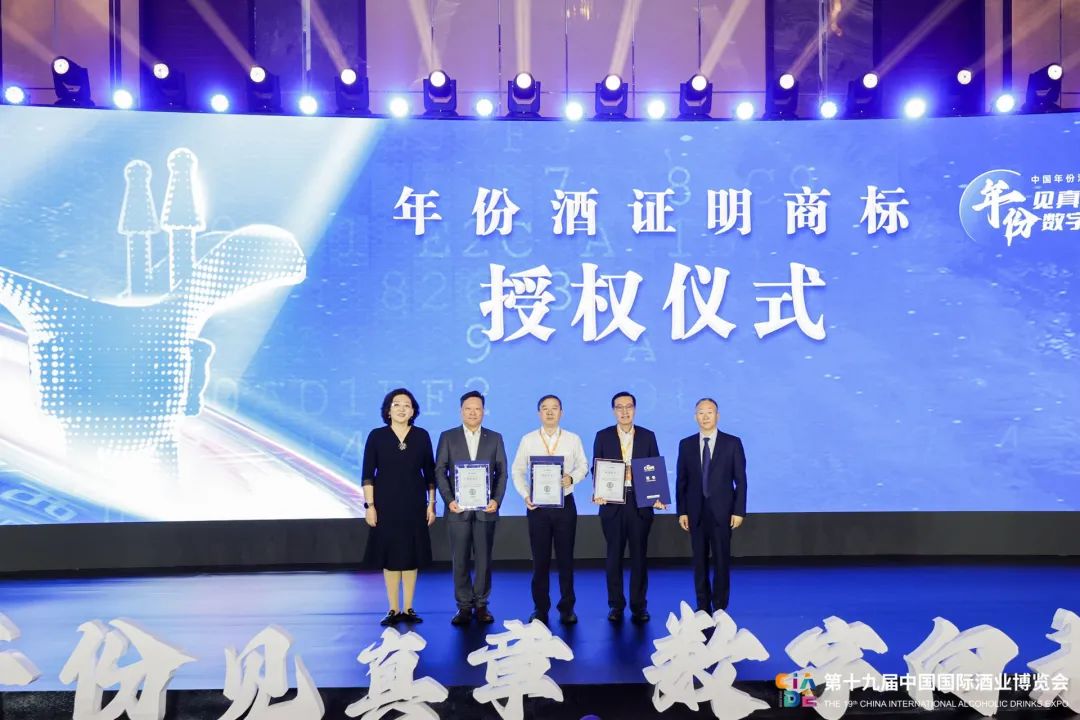 隨后,方圓標志認證集團董事長冀曉東為優(yōu)秀企業(yè)頒發(fā)年份酒產(chǎn)品認證證書,同時中國酒業(yè)協(xié)會理事長宋書玉授權(quán)其使用年份酒證明商標。