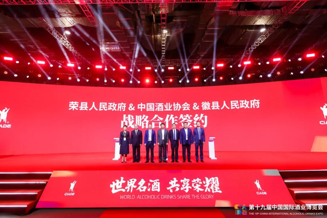 開幕式上,中國酒業協會分別與榮縣人民政府、徽縣人民政府簽署戰略合作協議。中國酒業協會副秘書長劉振國,自貢市榮縣人民政府副縣長虞芳,徽縣縣委副書記、徽縣人民政府縣長王福全進行簽約。自貢市政府副秘書長蔡國銀,自貢市經濟和信息化局局長朱斌,中國酒業協會執行理事長王琦,中國酒業協會副秘書長甘權共同見證。