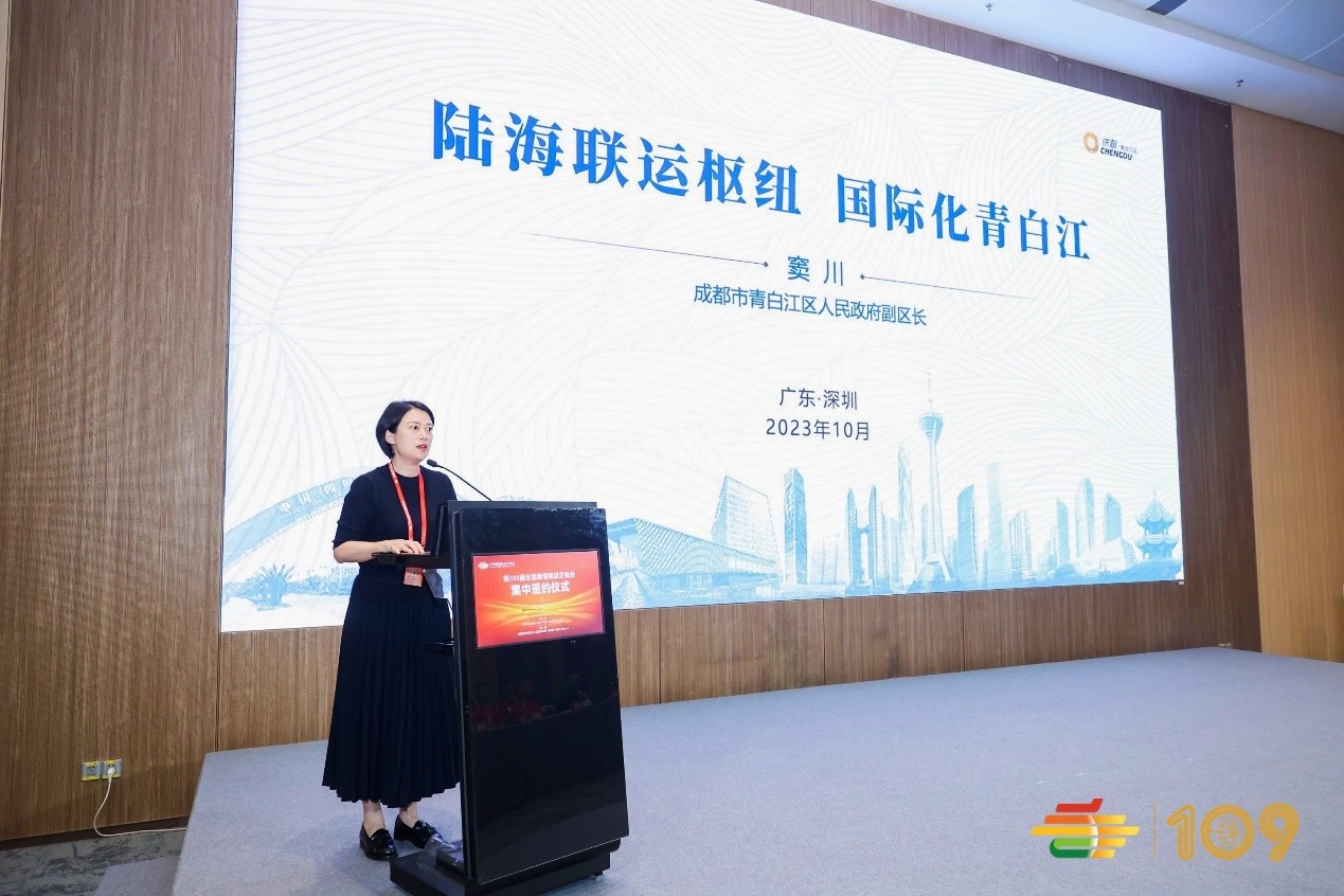隨后,成都市青白江區(qū)人民政府副區(qū)長(zhǎng)竇川推介了作為國(guó)際化的陸海聯(lián)運(yùn)樞紐的青白江區(qū)。她介紹到,近年來(lái)我們積極主動(dòng)服務(wù)和融入“一帶一路”、成渝地區(qū)雙城經(jīng)濟(jì)圈、“雙循環(huán)”新發(fā)展格局等國(guó)家戰(zhàn)略,充分發(fā)揮我們陸港樞紐的引擎作用,著力發(fā)展進(jìn)出口貿(mào)易,輻射帶動(dòng)區(qū)域經(jīng)濟(jì)高質(zhì)量發(fā)展,成為促進(jìn)成都推動(dòng)新一輪高水平對(duì)外開(kāi)放,助力四川加快構(gòu)筑向西開(kāi)放的戰(zhàn)略高地與參與國(guó)際競(jìng)爭(zhēng)新經(jīng)濟(jì)的重要力量。她熱忱邀請(qǐng)各類進(jìn)口特色消費(fèi)品代理商企業(yè)到青白江開(kāi)展貿(mào)易業(yè)務(wù),參與到青白江開(kāi)放的熱潮中來(lái),誠(chéng)邀全國(guó)企業(yè)相約青白江,相聚在第110屆全國(guó)糖酒會(huì)。