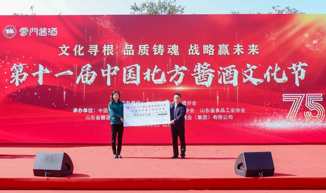 任之重,道致遠(yuǎn),以大企責(zé)任踐行云門擔(dān)當(dāng)。活動現(xiàn)場,播放了云門教育公益短片《醬心圓夢,永不止步》,共同回顧了公益云門的發(fā)展之路。并將昨天“云門酒業(yè)洞藏工程啟動20周年紀(jì)念暨洞藏老酒拍賣會”上拍得的46萬元捐贈給青州市廟子初級中學(xué),以助力教育事業(yè)的建設(shè)發(fā)展。