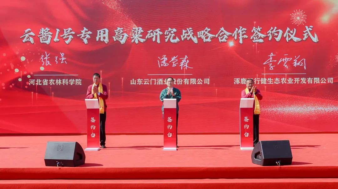 一方水土,一方糧谷,一方釀藝,一方美酒。中國白酒是天人合一的產(chǎn)物,大曲醬酒更是時間和自然的完美締造。圍繞品質(zhì)提升,云門酒業(yè)秉持“生態(tài)釀造”原則,從釀造原料入手,建立專屬“云門醬糧”優(yōu)質(zhì)高粱種植試驗基地,在活動現(xiàn)場,進(jìn)行了“云醬1號專用高粱研究戰(zhàn)略合作簽約儀式”。