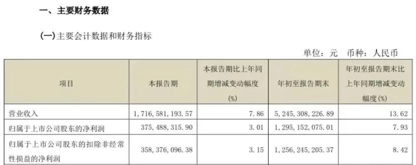 10月25日,舍得酒業股份有限公司(以下簡稱“舍得酒業”)披露2023年第三季度報告。報告顯示,今年前三季度,舍得酒業實現營業收入52.45億元,同比增長13.62%;歸屬于上市公司股東的凈利潤12.95億元,同比增長7.93%。其中,第三季度實現營業收入17.17億元,同比增長7.86%;歸屬于上市公司股東的凈利潤3.75億元,同比增長3.01%。