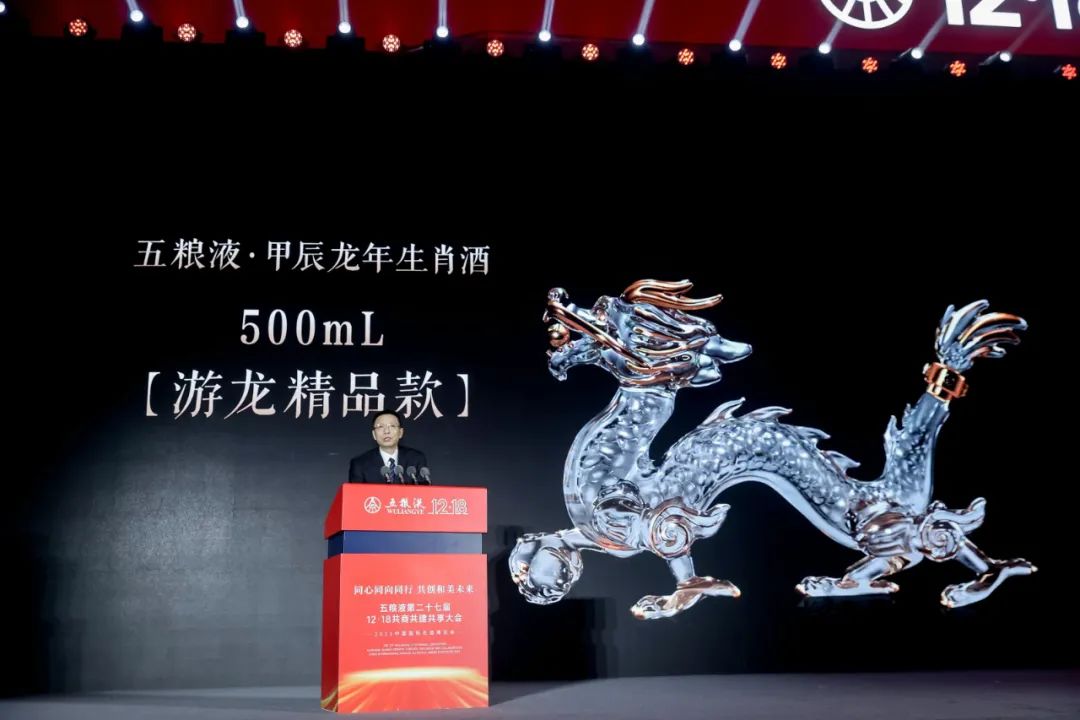 活動現場,五糧液還隆重舉行了“五糧液·甲辰龍年生肖酒”發布盛典。以生肖文化為靈感設計的限量版佳釀——五糧液·甲辰龍年生肖酒隆重亮相。中國白酒大師、五糧液股份公司技術總顧問趙東在現場從賞龍之韻、品龍之醇、鑄龍之魂、藏龍之曜四個篇章,對產品深厚的文化內涵、極致工藝、匠心品質,尊享價值進行了深度介紹。