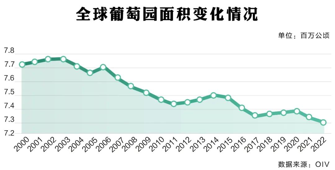 在經(jīng)歷了2000年-2015年的長期擴(kuò)張之后,近年來,中國葡萄種植面積(居全球第三)的增長正在放緩,預(yù)計(jì)2022年中國葡萄園面積將與2021年持平,為78.5萬公頃。