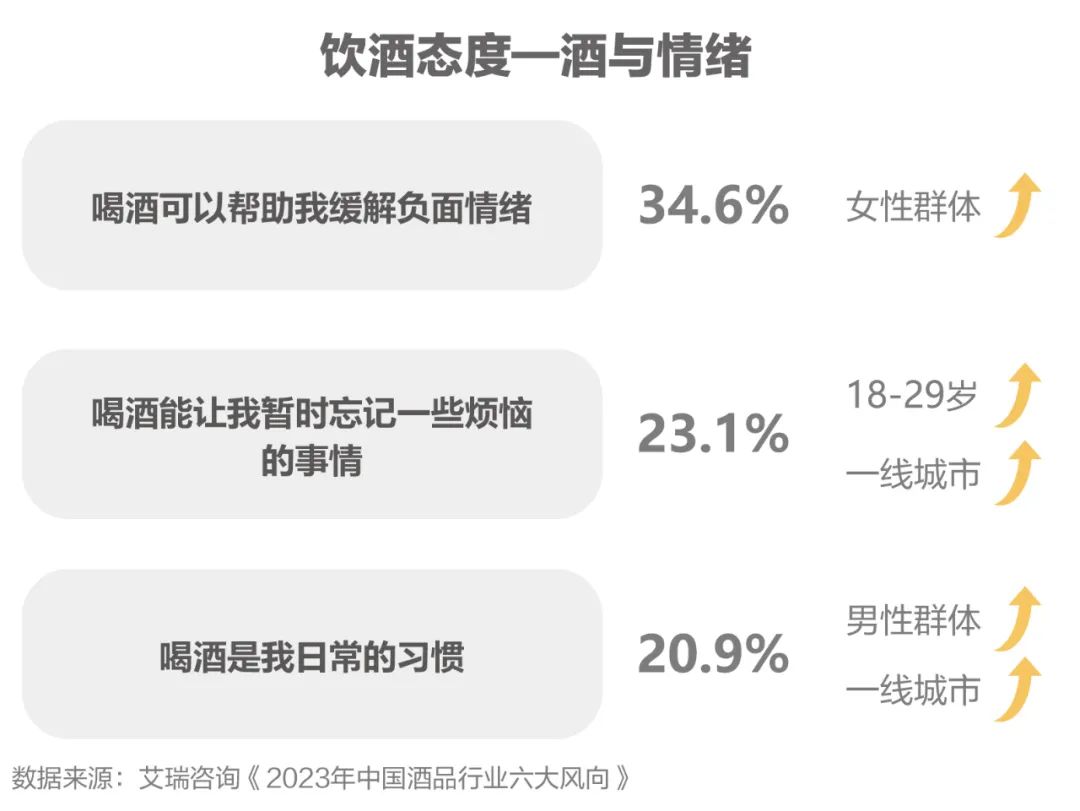 餐飲業態中,燒烤及正餐的店均營收增長較為明顯。酒飲行業中,健康與情緒釋放驅動酒飲消費增長。酒仍帶有健康符號,在情緒釋放上,承載著緩解、忘卻的功能。數據顯示,近五成消費者追求“剛剛好,不會醉”的飲酒狀態;18-29歲消費者則更喜歡“按心情來”。女性群體更易通過飲酒“放松心情,緩解負面情緒”;年輕人群和一線城市消費者則通過飲酒“暫時忘卻煩惱的事”。