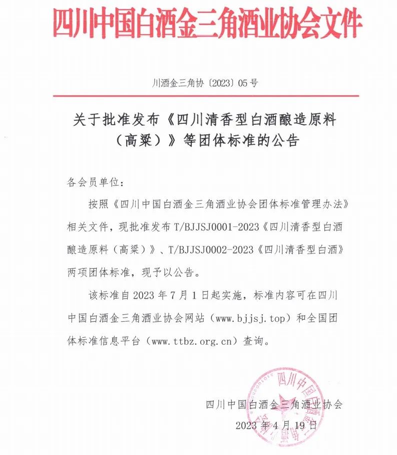 從2022年12月10日發起成立四川省食品飲料產業協會“清香白酒分會”,到2023年2月17日征集《四川清香型白酒釀造原料(高粱)》等團體標準起草單位,再到2023年7月1日《四川清香型白酒釀造原料(高粱)》《四川清香型白酒原酒》《四川清香型白酒機械化釀造生產技術規范》團體標準正式實施······相關協會、企業以及科研院所用不到7個月的時間,完成了重啟川派小曲清香再發展的“三步走”。