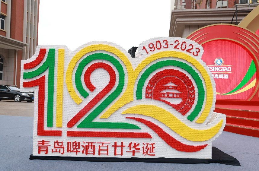 作為本次活動的“重頭戲”,青島啤酒120周年華誕紀念標識備受關注。這個采用紅、綠、金三色,由數字“120”“1903-2023”和青島棧橋回瀾閣圖標,麥穗、波紋等造型組成的紀念標識,代表著青島啤酒120年的里程碑與新起點。